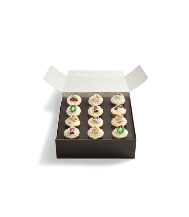 As beautiful as snow covered hills, this Christmas Mini Cupcake box will bring joy to the world. Each gift box of twelve mini cupcakes is lovingly decorated by our baking elves and baked fresh from the finest ingredients.