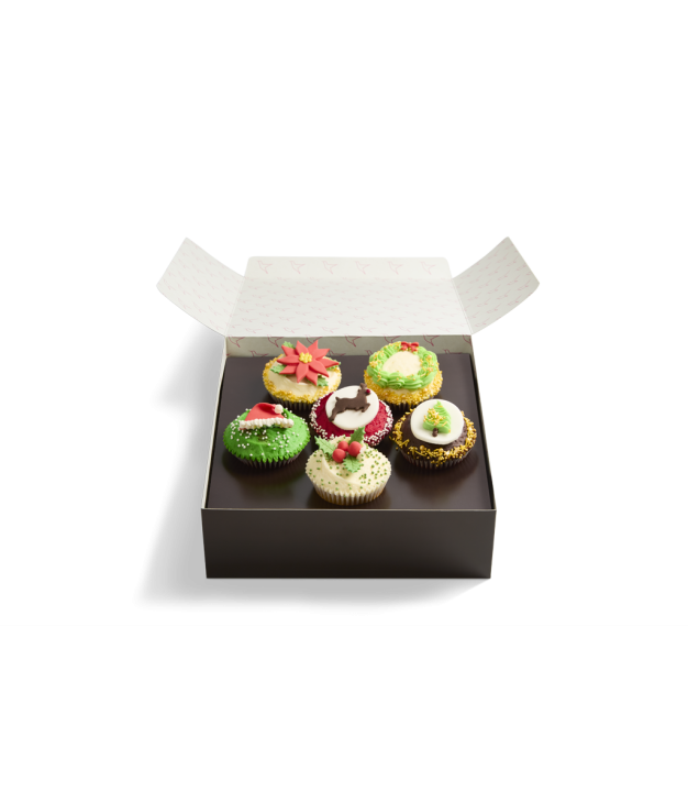 Just enough for Santa and his elves, our Made Without Gluten Christmas Cupcake box is a festive selection of our favourite American cupcake flavours. These are one of our bestselling Christmas treats, so be sure to stock your sleigh high.