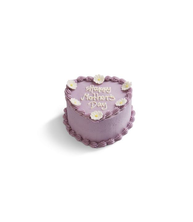 Treat mum to a slice of real American baking with our irresistible Made Without Gluten Lilac Vanilla Heart Cake. Two layers of the lightest vanilla sponge, generously frosted with luscious lilac vanilla frosting. Topped with shell piping and fondant daisies.